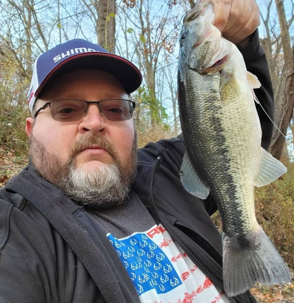 Largemouth BassTechniqueFinesse JigsSeasonFallStructureLaydownstough day in the colder weather. Fish Crooked Creek, actually up the Creek from the lake. Black/blue jig was the color combo the bass wanted.