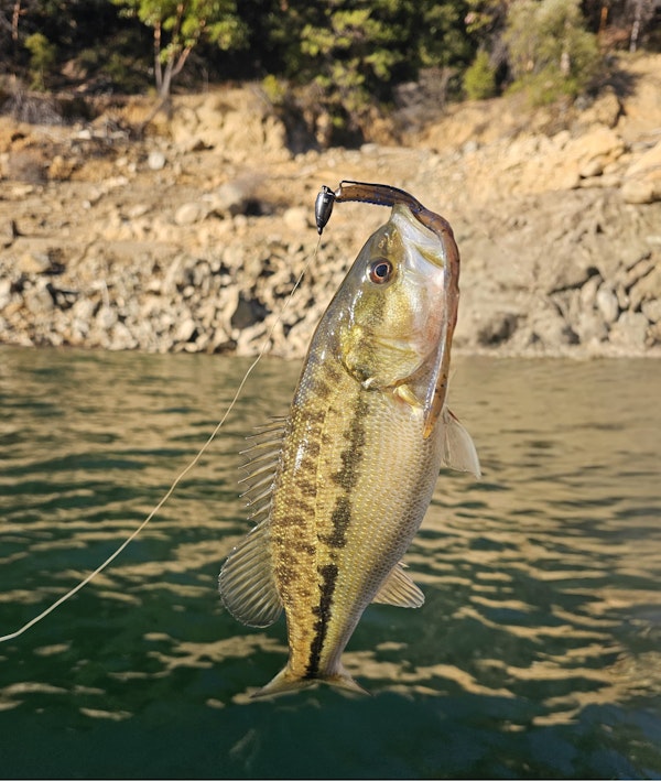 Spotted BassTechniqueDrop ShotSeasonWinterStructurePointsAnyone who has read one of my Bullards Bar reports knows I'm in constant search for the elusive monster spotties that are in this lake. Thank goodness we get to catch tons of their smaller cousins while we're out huntin' the big boys... Today, it was a drop shot in about 20 feet of water that was working. It seemed like the most productive spots were on the upwind side of points. I love those VMC Drop Shot hooks. Makes the rig so easy. And the Strike King Baby Z's are amazing.