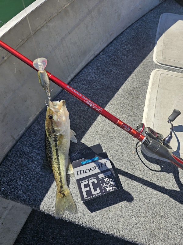 Spotted BassTechniqueDeep Diving Crankbaits (13'+)SeasonSpring (Pre-Spawn)StructurePointsTrue Story: I was selected to test out Shimano's new Flouro, which I received last week. So I loaded up a couple reels and headed out to my favorite lake to give it a try. First cast with the new line and I hooked up. (sorry for the lame photo, but that was the catch) It was probably 100+ more casts before I got fish #2....but what a start! This was a forced crank bait and swim bait day for me, as I try to learn how to fish hard plastics and stop falling back to my comfort zone of finesse fishing. So if I'm catching fish on a 6th Sense crank bait...it's definitely a "Hotbait". And the Shimano line was really nice. I was actually using 10lb test and it really casts well. It was the first time out with it, so I'll reserve comments on durability until I've been out with it 10 or more times. But for the day, it did great. It has really good feel, and it didn't nick up at all during the day. And I spent all day driving that crankbait right down to a rocky bottom. If you're using Flouro, I would definitely recommend giving it a try. I'll continue to comment as I get out there with it more in the coming weeks.