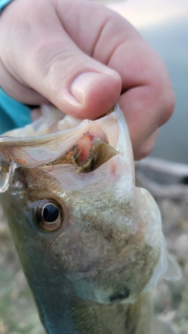 Largemouth BassTechniqueTexas Rigs (Worming)SeasonSpring (Pre-Spawn)StructureLaydownsBass and Bluegill were visible on structure around the bank. Bass were not very active. I was able to to get some bites working a Texas rigged worm weightless in and out of the laydowns.