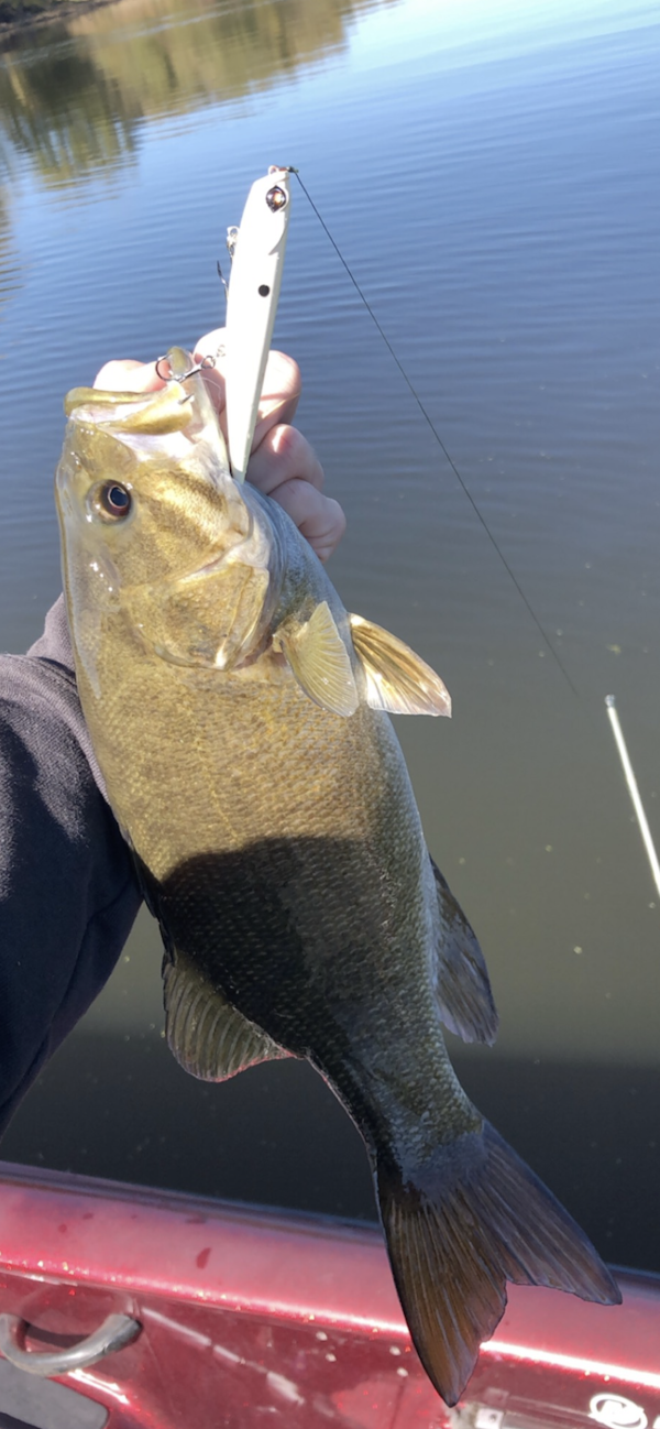 Smallmouth BassTechniqueHard Topwater (Walking)SeasonFallStructureRiver ChannelsI caught a decent amount of small mouth focusing on current breaks just off the main river, depth didn't seem to play too much of a factor. If you were able to find good current breaks that had shad present, walking a spook in the slack part of the break was a good way to get bites. I would also rotate in a shad colored jerkbait and a ned rig when they were not committing to spook after catching a few.