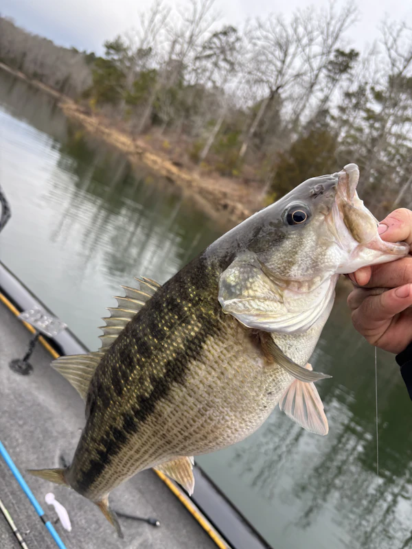 Spotted BassTechniqueSoft Body Swimbaits (Small/Medium)SeasonSpring (Pre-Spawn)StructurePointsFish are stacking up farther back into pockets on points and nulls, focus in on areas with harder bottom consistency. Fish are hugging bottom due to weather but are not afraid to eat baits in the middle of the water column. Work the bait at a consistent medium pace with jerks and twitch’s mixed in.