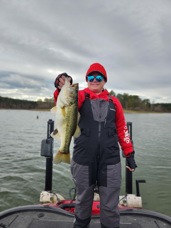 Largemouth BassTechniqueSoft Body Swimbaits (Small/Medium)SeasonWinterStructureLedgesWith the rain the area got Thursday, most of the major creek arms were off colored. I targeted the creek arms that were cleaner and fished ditches or drains that had a defined ledge. The shad were balled up right on the break. I was throwing a electric shad keitech on a 1/4 oz ball jig head on 10 pound berkley nanofil with a 15 pound sunline shooter leader. I positioned my boat to be able to cast across the ditch. I would let it sink to the bottom and then give it a slow retrieve and I’d kill it every couple cranks of the reel handle. When I got close to the ledge that’s where I’d get the bite and it was always when it it on the fall of the bait after killing the reel. They were absolutely choking the bait. Once the sun came out and the wind picked up, I switched to burning the edges of grass with a 1/2 oz. White hologram Picasso hog snatcher double willow with a pearl super fluke jr trailer.
