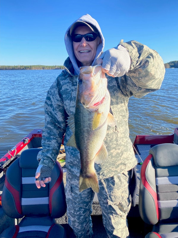 Largemouth BassTechniqueHard JerkbaitsSeasonWinterStructureStumpsFishing for the first time on this Reservoir. The bite was tough for both me & my buddy. We were throwing practically everything we had at them, blade baits, soft plastics, micro spinners, small cranks to mention a few! Once we brought out the jerkbaits, things changed for me, at least! I hooked a largemouth bass on a Rapala jerkbait. The Clown color seemed to be what they liked best! The one in the picture weighed a little over 3 pounds!