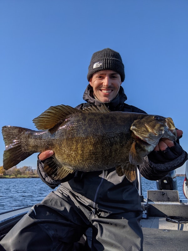 Smallmouth BassTechniqueBladed JigsSeasonFallStructureBoulders52 degree water, 15km/h winds, sunny sky with a little bit of clouds and feeding smallmouths. Roamed around shallow flats all day and caught just under 24lbs for my best 5. They would INHALE the chatterbait. NO hesitation. I would set the boat against the current and bring the bait back with the current. As soon as I saw a light spot on the flat, I would spot-lock 10-15 feet away from it and make a couple of casts across the spot and that's where I'd get my bites. Also caught my personal best smallmouth: 6lb-8oz. GREAT day !