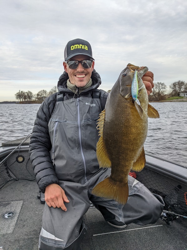 Smallmouth BassTechniqueHard JerkbaitsSeasonFallStructureRock PileSlow wind, cloudy and sunny skies, 50° water and smallmouths feeding for fall! Great jerkbait bite on rock flats. Target casting on boulders and I'd get smashed on long pauses.