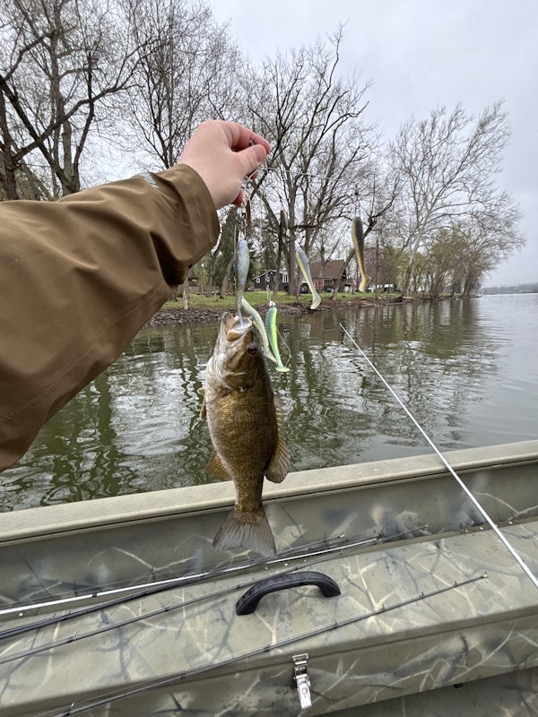 Smallmouth BassTechniqueShallow Diving Crankbaits (0-6')SeasonSpring (Pre-Spawn)StructureBouldersThe slow bite using ned rigs and tubes was not working. I sped it up cranking hard against the current in feeder creeks. It started producing steadily