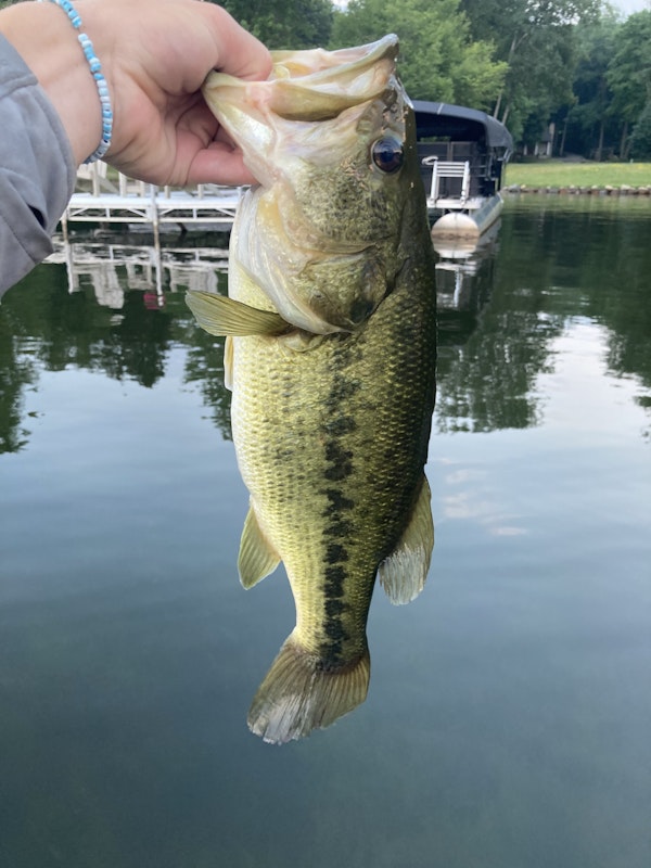 Largemouth BassTechniqueTexas Rigs (Worming)SeasonSummerStructureDocksTexas rigged senko and other worms in any cover I could find. Caught a few nice fish.