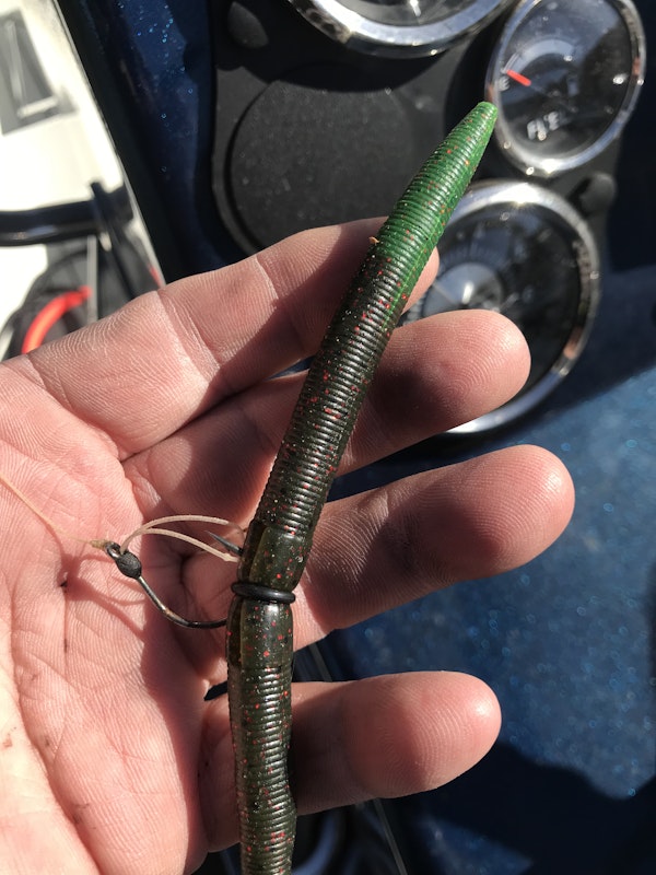 Largemouth BassTechniqueBladed JigsSeasonWinterStructureDocksWe were skipping docks and slow rolling the jackhammer on the bottom