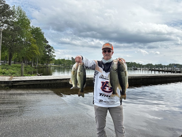 Largemouth BassTechniqueWacky RigsSeasonSpring (Post-Spawn)StructureStumpsFished the Bassmaster Open on the James River. Made the run both days to the Chickahominy River and targeted fish in the cypress trees during high tide with a weightless Texas-rigged Yamamoto Senko. Flipped it in between cypress knees and got a lot of bites doing that. During low tide, I moved off the shoreline and focused on the lily pads that were just off of the bank about 40-50 yards or so. Caught fish throwing a Spro Bronzeye Frog and a Z-Man Jackhammer as fish we targeting the shad that had to move out from the shallow flats when the tide went out.