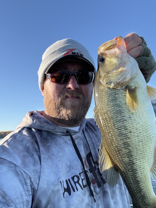 Largemouth BassTechniqueDamiki RigSeasonFallStructureFlooded BrushThe note is really slowing down temps dropping hard and wind has been crazy fish are lethargic but if you can get it right above them they will nail it less action is more