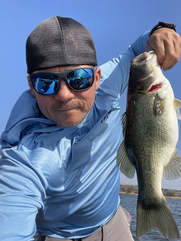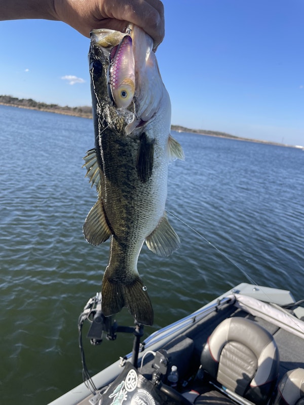 Largemouth BassTechniqueShallow Diving Crankbaits (0-6')SeasonWinterStructureSubmerged VegetationWater temperature was 57 degrees in the morning and 60 degrees by the end of the day. Bass were schooling in 4-7’ of water. Cranking the hybrid hunter along the bank ripping it through the submerged vegetation doing so as fast as possible to get a reaction bite from the schooling bass. When they slowed down in the schools I worked the robo worm along the submerged grass edges in 6-9’ of water this as a consistent bite throughout the day.