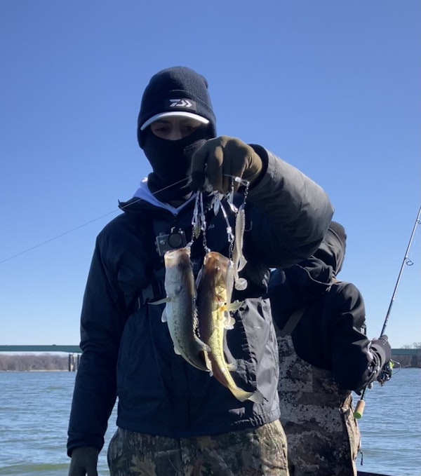 Smallmouth BassTechniqueDamiki RigSeasonSpring (Pre-Spawn)StructurePointsCatching Spots and Smallmouth on points and creeks with a mooch minnow.