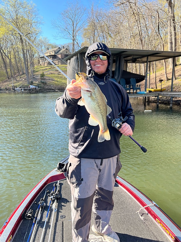 Smallmouth BassTechniqueDamiki RigSeasonSpring (Spawn)StructureBaitfishI found a small school of smallmouth chasing and feeding on shad in the backs of pockets and I was able to catch 3 just trying to work on my Livescope skills. There were definitely some fish underneath docks and on the bottom I just didn’t have any success catching them with any bottom contact baits.