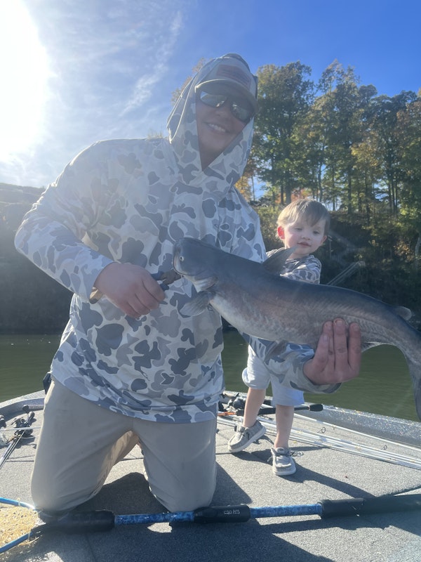 CatfishTechniqueDamiki RigSeasonWinterStructureBaitfishRight now there are gobs and gobs of bait fish up and down the lake. Some have active fish in them some down. I was out with the family just fun fishing and I scoped a catfish (unintentionally). We caught a few but they are definitely very keyed on the baitfish. It can be a touch difficult to get them to bite but be patient.