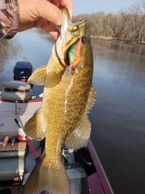 Smallmouth BassTechniqueMedium Diving Crankbaits (7'-12')SeasonFallStructureRip RapSlowly retrieving the Rock Crawler along riprap banks. Also caught fish on Core Tackle Ozark rig with a Berkley Power Hawg trailer down the steep outside bends in the river.