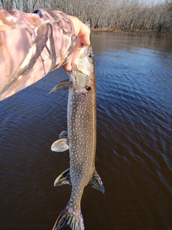 Northern PikeTechniqueHard JerkbaitsSeasonWinterStructureRiver ChannelsFound northern in the quiet water just off the main river channel.