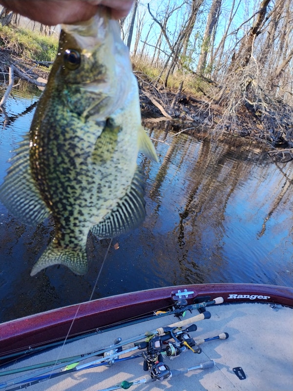 CrappieTechniqueFinesse JigsSeasonWinterStructureLaydownsRiver crappie love to be near wood this time of year. I cut the creature hog down to make a compact presentation.