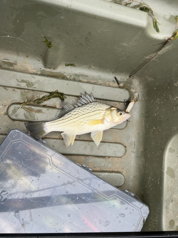 White BassTechniqueMedium Diving Crankbaits (7'-12')SeasonFallStructurePointsCaught this little guy on a gizzard shad.